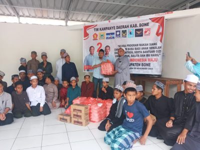 RadarOnline.id, BONE – Selasa, 28 November 2023 – Hari pertama masa kampanye Pemilu 2024 di Kabupaten Bone, Tim Kampanye Daerah (TKD) Pasangan Capres-Cawapres Prabowo-Gibran memulai aksi dengan berbagi makanan dan susu gratis di Pesantren Darul Lappae, Kecamatan Tellu Siattinge, Kabupaten Bone. Tim kampanye yang dipimpin oleh Ketua TKD Prabowo Gibran, Irwandi Burhan bersama Wakil Sekretaris […]